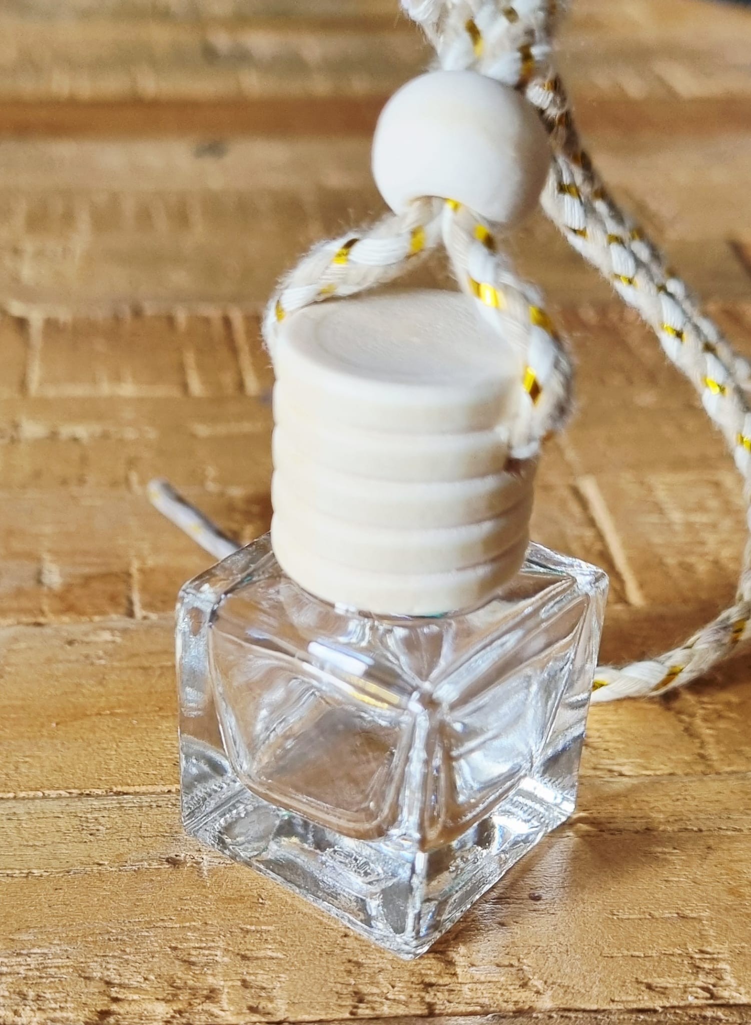 Le parfum sera imbibé dans le bouchon en bois, assurant une diffusion optimale. Suspendez le diffuseur dans la voiture à l'endroit de votre choix.